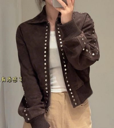 • [홍콩명품.LOEWE] 로에베 25SS 로고 여성 레더 가죽 카라 봄버 자켓 (브라운), BM22900, PG, 레플리카의류,미러급사이트