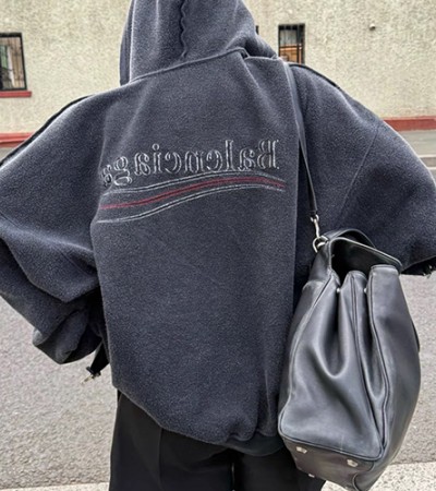 • [홍콩명품.BALENCIAGA] 발렌시아가 25SS 로고 웨이브 빈티지 리버서블 후드 집업 자켓 (다크그레이), BM22927, KB, 레플리카의류,미러급사이트