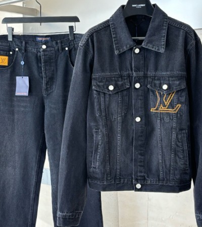 • [홍콩명품.LOUIS VUITTON] 루이비통 25SS 로고 데님 카라 자켓 + 데님 팬츠 진 청바지 상하의 세트 (블랙), BM22930, KB, 레플리카의류,미러급사이트