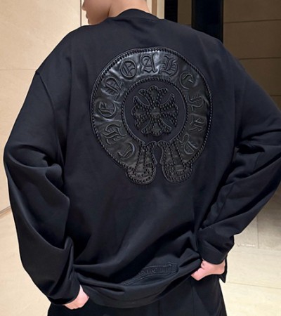 • [홍콩명품.Chrome Hearts] 크롬하츠 25SS 로고 레더 긴팔 티셔츠 (블랙), BM22997, KK, 레플리카의류,미러급사이트