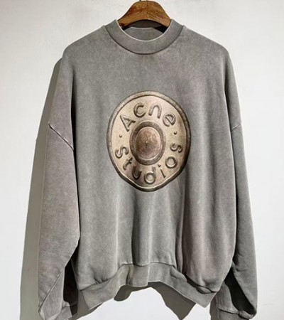 • [홍콩명품.ACNE STUDIO] 아크네스튜디오 25SS 로고 그래픽 프린트 워싱 맨투맨 티셔츠 (그레이), BM23028, X2, 레플리카의류,미러급사이트