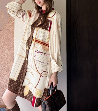 • [홍콩명품.LOUIS VUITTON] 루이비통 25SS 로고 여성 모노그램 셔츠 원피스 (브라운-아이보리), BM23066, MC, 레플리카의류,미러급사이트