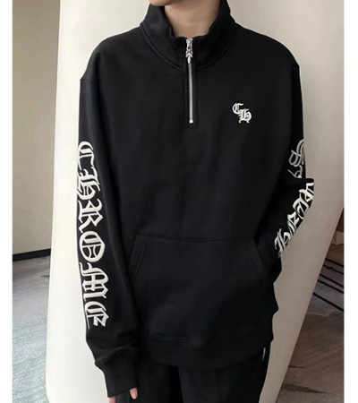 [홍콩명품.Chrome Hearts] 크롬하츠 25SS 로고 자수 터틀넥 하프지퍼 맨투맨 티셔츠 (블랙), BM23157, JL, 레플리카의류,미러급사이트 > 남자의류