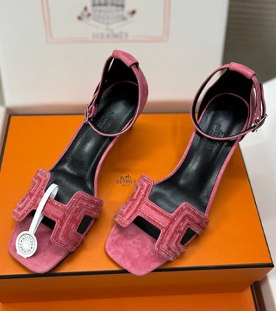 • [홍콩명품.Hermes] 에르메스 25SS 로고 여성 레더 가죽 힐 샌들 (핑크), SE5811, 명품스니커즈,운동화,구두,로퍼,하이탑,신발