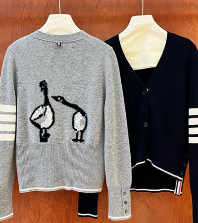 • [홍콩명품.THOME BROWNE] 톰브라운 25SS 로고 여성 4바 V넥 니트 가디건 (2컬러), BM23225, KSM, 레플리카의류,미러급사이트
