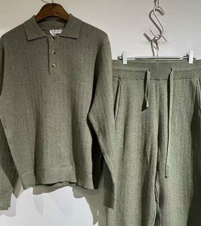 • [홍콩명품.Loro Piana] 로로피아나 25SS 로고 카라 폴로 니트 스웨터 + 팬츠 바지 상하의 세트 (카키), BM23241, X2 레플리카의류,미러급사이트