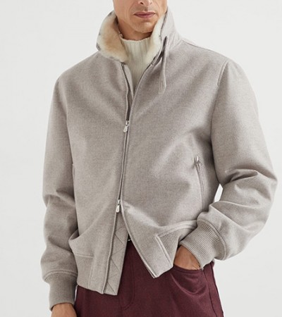 • [홍콩명품.Brunello Cucinelli ] 브루넬로 쿠치넬리 25SS 로고 시어링 울 캐시미어 봄버 자켓 (그레이), BM23243, PG, 레플리카의류,미러급사이트