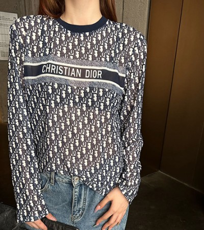 • [홍콩명품,Christian Dior] 디올 25SS 로고 여성 오블리크 긴팔 티셔츠 (네이비), BM23253, TBG, 레플리카의류,미러급사이트