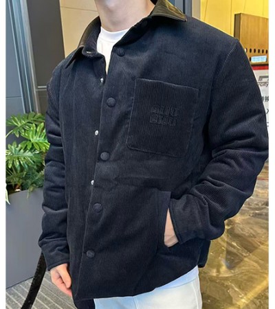 [홍콩명품,MIU MIU] 미우미우 25SS 로고 코드류이 골덴 셔츠 솜패딩 자켓 (네이비), BM23363, JL, 레플리카의류,미러급사이트 > 남자의류