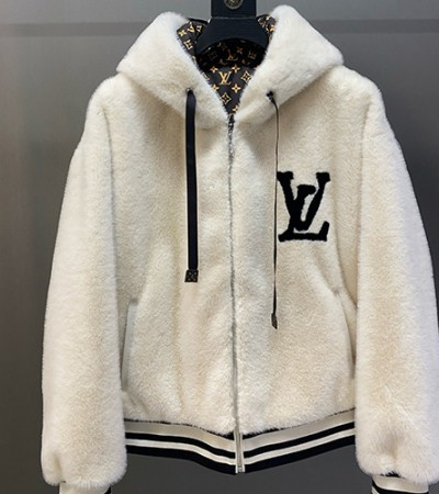 • [홍콩명품.LOUIS VUITTON] 루이비통 25SS 로고 밍크 퍼 후드 집업 자켓 (아이보리), BM23369, JL, 레플리카의류,미러급사이트