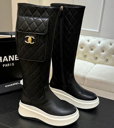 • [홍콩명품.CHANEL] 샤넬 25SS 로고 여성 레더 가죽 퀄팅 롱 부츠 (블랙), SE5829, GHS, 명품스니커즈,운동화,구두,로퍼,하이탑,신발