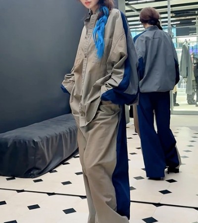 [홍콩명품.BALENCIAGA] 발렌시아가 25SS 로고 레이어드 셔츠 자켓 + 오버핏 팬츠 바지 상하의 세트, BM23424, KB, 레플리카의류,미러급사이트 요약정보 및 구매