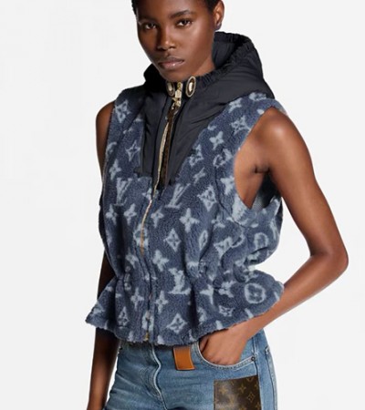 • [홍콩명품.LOUIS VUITTON] 루이비통 25SS 로고 여성 모노그램 플리스 후드 조끼 베스트 1AIP56 (네이비), BM23463, MC, 레플리카의류,미러급사이트