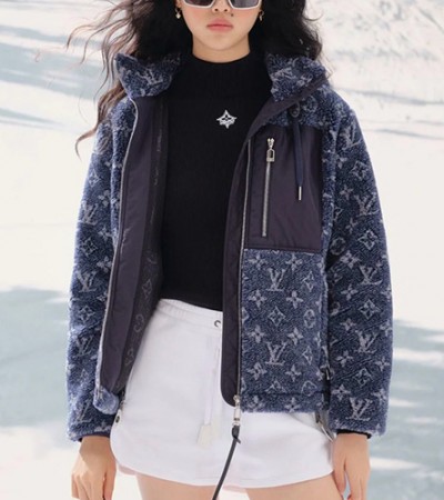 • [홍콩명품.LOUIS VUITTON] 루이비통 25SS 로고 여성 모노그램 플리스 후드 바람막이 자켓 1AIQQY (네이비), BM23464, MC, 레플리카의류,미러급사이트