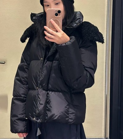 • [홍콩명품,MIU MIU] 미우미우 25SS 로고 자수 여성 후드 다운 패딩 자켓 (블랙), BM23344, KB, 레플리카의류,미러급사이트