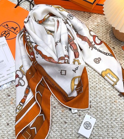 [홍콩명품.Hermes] 에르메스 25SS 로고 패턴 140-140 실크 캐시미어 스카프 머플러 (오렌지), ET3214, 홍콩명품의류,구매대행,온라인명품 요약정보 및 구매