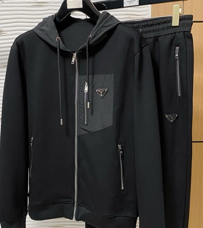 [홍콩명품,PRADA] 프라다 25SS 삼각로고 후드 집업 자켓 + 조거 팬츠 바지 상하의 세트 (블랙), BM23517, G5, 레플리카의류,미러급사이트 > 남자의류