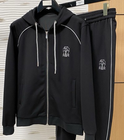 [홍콩명품.Brunello Cucinelli ] 브루넬로 쿠치넬리 25SS 로고 자수 후드 집업 자켓 + 조거 팬츠 바지 상하의 세트 (블랙), BM23519, G5, 레플리카의류,미러급사이트 > 남자의류