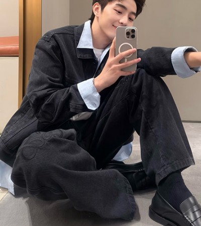 [홍콩명품.LOEWE] 로에베 25SS 로고 데님 카라 자켓 + 데님 팬츠 진 청바지 상하의 세트 (블랙), BM23559, KB, 레플리카의류,미러급사이트 > 남자의류