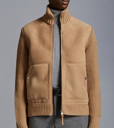 • [홍콩명품.MONCLER] 몽클레어 25SS 로고 하이넥 레더 가죽 레이어드 자켓 (브라운), BM23588, TOM, 레플리카의류,미러급사이트