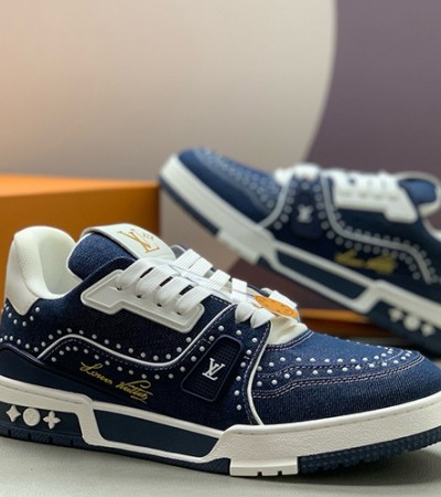 [홍콩명품.LOUIS VUITTON] 루이비통 25SS 로고 모노그램 트레이너 스니커즈 운동화 (데님), SE5853, PMD, 명품스니커즈,운동화,구두,로퍼,하이탑,신발 > 신발