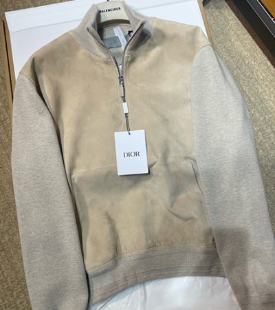 • [홍콩명품,Christian Dior] 디올 25SS 로고 터틀넥 하프지퍼 레더 가죽 맨투맨 티셔츠 (베이지), BM23832, PG, 레플리카의류,미러급사이트