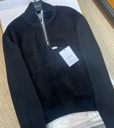 • 홍콩명품,Christian Dior] 디올 25SS 로고 터틀넥 하프지퍼 레더 가죽 맨투맨 티셔츠 (블랙), BM23833, PG, 레플리카의류,미러급사이트