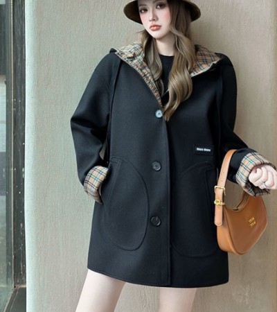 [홍콩명품,MIU MIU] 미우미우 25SS 로고 여성 후드 코트 자켓 (블랙), BM23889, MC, 레플리카의류,미러급사이트 요약정보 및 구매
