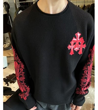 [홍콩명품.Chrome Hearts] 크롬하츠 25SS 로고 크로스 캐시미어 니트 스웨터 (블랙), BM23958, JL, 레플리카의류,미러급사이트 > 남자의류