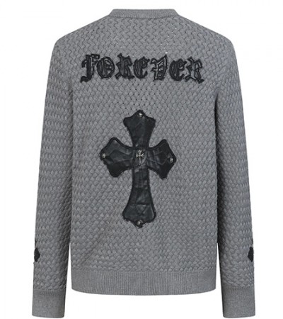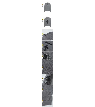 • [홍콩명품.Chrome Hearts] 크롬하츠 25SS 로고 크로스 V넥 니트 가디건 (그레이), BM23966, G5, 레플리카의류,미러급사이트