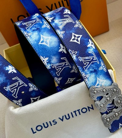 • [홍콩명품.LOUIS VUITTON] 루이비통 25SS 로고 LV Initiales 다미에 레더 가죽 리버서블 벨트 (블루-2버클), 4.0cm, BT1502, 명품레플리카,인터넷쇼핑몰,남자명품,해외직구