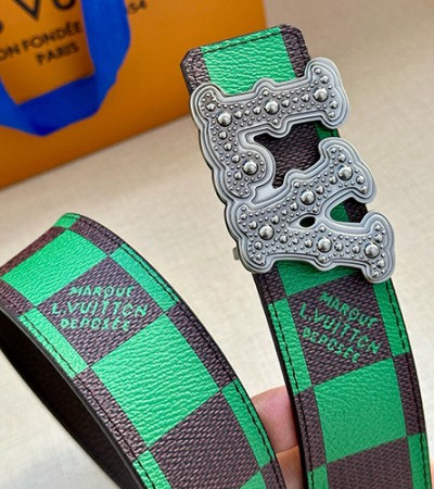 • [홍콩명품.LOUIS VUITTON] 루이비통 25SS 로고 LV Initiales 다미에 레더 가죽 리버서블 벨트 (그린-2버클), 4.0cm, BT1503, 명품레플리카,인터넷쇼핑몰,남자명품,해외직구