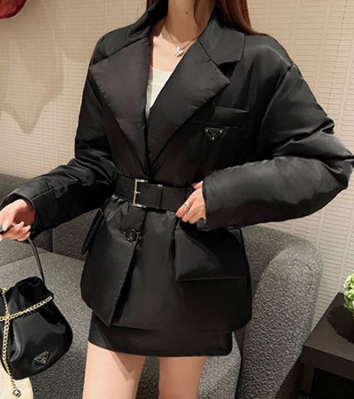 [홍콩명품,PRADA] 프라다 25SS 삼각로고 벨티드 나일론 다운 패딩 자켓 (블랙), BM24015, MC, 레플리카의류,미러급사이트 > 여성몰