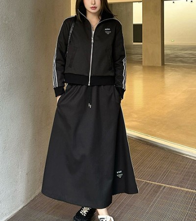 • [홍콩명품,PRADA] 프라다 25SS 삼각로고 여성 솜패딩 카라 트레이닝 자켓 + 롱 스커트 상하의 세트 (2컬러), BM24022, MC, 레플리카의류,미러급사이트