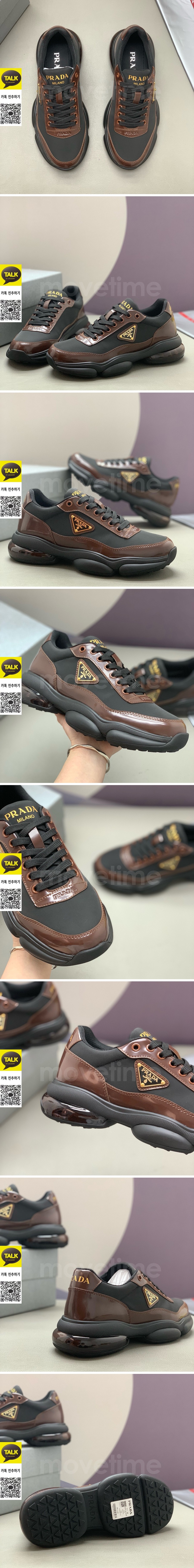 • [홍콩명품,PRADA] 프라다 25SS 삼각로고 레더 가죽 스니커즈 운동화 (브라운-블랙), SE5904, PMD, 명품스니커즈,운동화,구두,로퍼,하이탑,신발