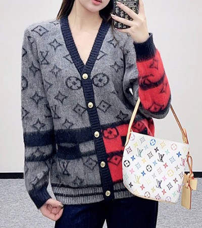 [홍콩명품.LOUIS VUITTON] 루이비통 25SS 로고 여성 모노그램 모헤어 V넥 니트 가디건 (그레이-레드), BM24095, TBG, 레플리카의류,미러급사이트 > 여성몰