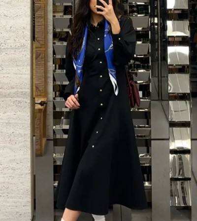 • [홍콩명품.CELINE] 셀린느 25SS 로고 여성 롱 셔츠 원피스 (네이비), BM24136, MC, 레플리카의류,미러급사이트