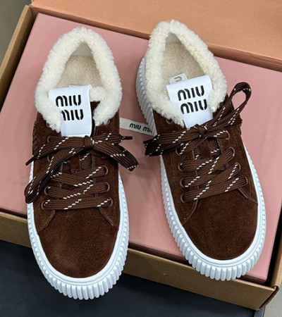 [가격문의][홍콩명품,MIU MIU] 미우미우 25SS 로고 여성 시어링 레더 가죽 스니커즈 운동화 (2컬러), SE5982, GHS, 명품스니커즈,운동화,구두,로퍼,하이탑,신발 요약정보 및 구매