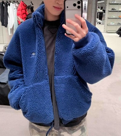[홍콩명품.BALENCIAGA] 발렌시아가 25SS 로고 자수 플리스 봄버 자켓 (블루), BM24268, KB, 레플리카의류,미러급사이트 요약정보 및 구매