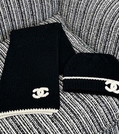 • [홍콩명품.CHANEL] 샤넬 26SS 로고 캐시미어 스카프 머플러 + 비니 모자 세트 (2컬러), ET3282, JX, 홍콩명품의류,구매대행,온라인명품