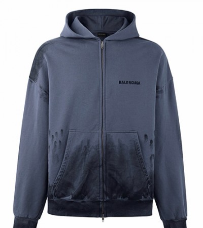 • [홍콩명품.BALENCIAGA] 발렌시아가 26SS 로고 자수 워싱 후드 집업 자켓 (블루), BM24313, JL, 레플리카의류,미러급사이트
