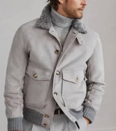 • [홍콩명품.Brunello Cucinelli ] 브루넬로 쿠치넬리 26SS 로고 퍼카라 레더 가죽 봄버 자켓 (그레이), BM24328, TOM, 레플리카의류,미러급사이트