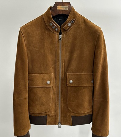 • [홍콩명품.TOM FORD] 톰포드 26SS 로고 레더 가죽 봄버 자켓 (브라운), BM24330, TOM, 레플리카의류,미러급사이트