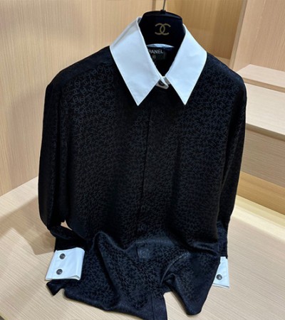 • [CHANEL] 샤넬 22SS 여자 블랙 실크셔츠 WM390, SS,홍콩명품의류,무브타임,해외직구,구매대행사이트