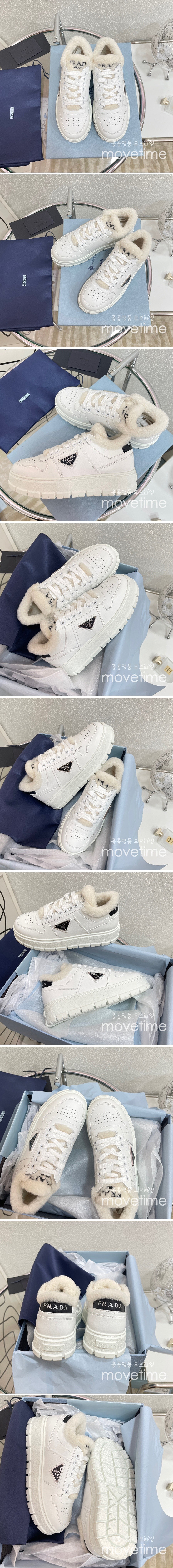 • [홍콩명품,PRADA] 프라다 23SS 여성  레더 시어링 삼각로고 스니커즈 (화이트) 1E947M, SE984, SMS, 무브타임사이트,인터넷명품쇼핑몰,남자명품,슈즈,신발