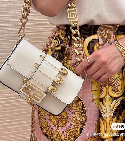 • [홍콩명품,FENDI] 펜디 23SS 펜다체 fendace 로고 버튼 바케트 숄더백(화이트), BGM958, MD, 홍콩명품가방,손목가방,크로스백,핸드백,구매대행,무브타임