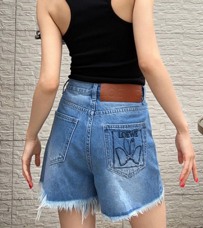 [홍콩명품.LOEWE] 로에베 23SS 로고 자수 데님 미니 쇼츠 반바지, BM5746, BR, 홍콩명품쇼핑몰,인터넷명품,온라인명품사이트,여자명품,해외직구 > 여성몰