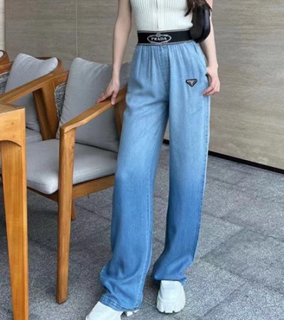 [홍콩명품,PRADA] 프라다 23SS 로고 밴딩 오버핏 데님 팬츠 진 청바지, BM5758, BR, 홍콩명품쇼핑몰,인터넷명품,온라인명품사이트,여자명품,해외직구 > 여성몰