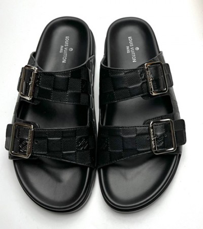 • [홍콩명품.LOUIS VUITTON] 루이비통 23SS 다미에 레더 바겐스탁 슬리퍼 (블랙), SE1523, PMD, 무브타임사이트,인터넷명품쇼핑몰,남자명품,슈즈,신발