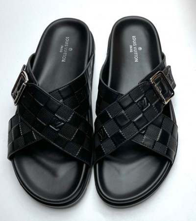 [홍콩명품.LOUIS VUITTON] 루이비통 23SS 다미에 레더 슬리퍼 (블랙), SE1524, PMD, 무브타임사이트,인터넷명품쇼핑몰,남자명품,슈즈,신발 > 신발